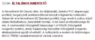 HEVESTHERM 60 CLASSIC 4 KAMRÁS ABLAKOK (MŰANYAG)